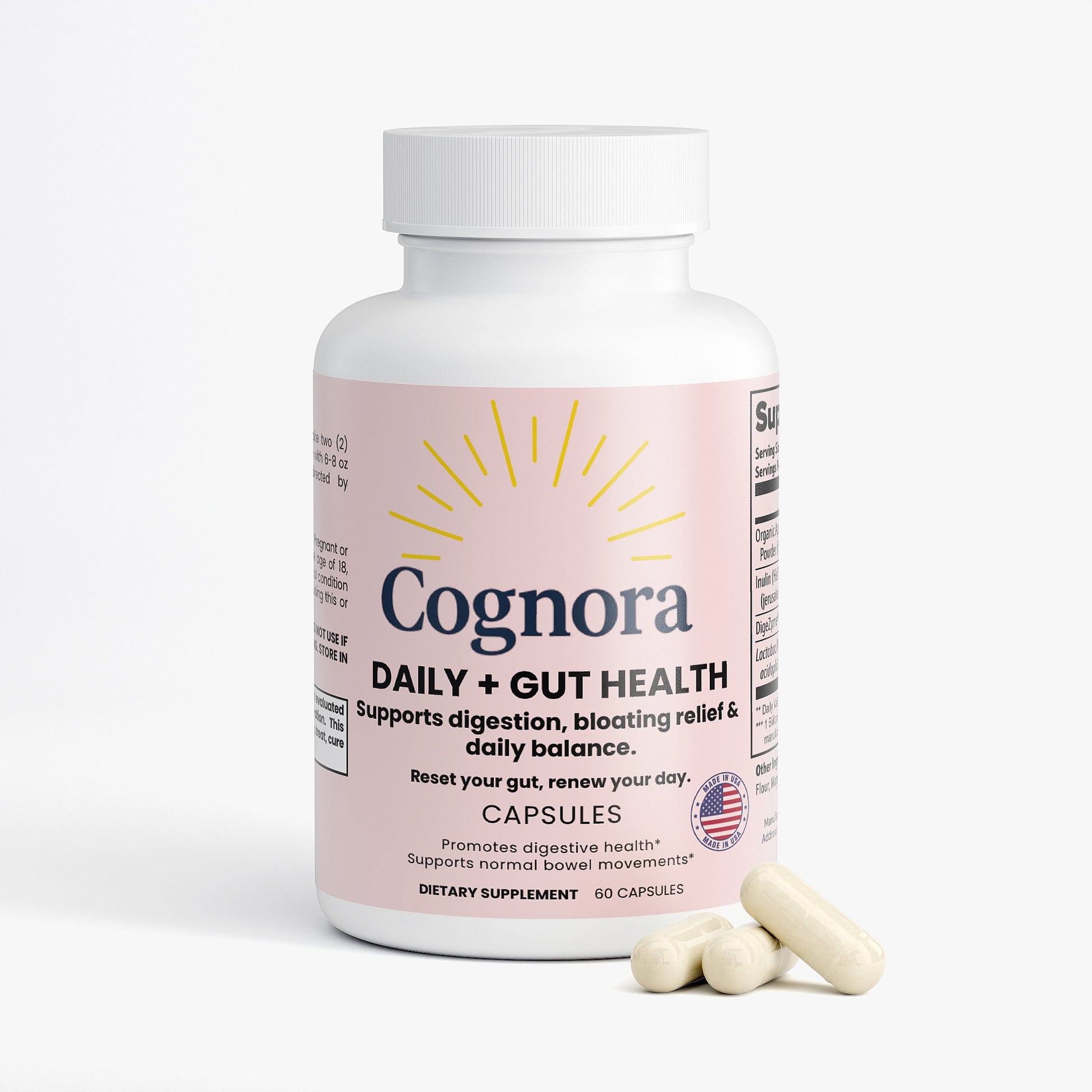 Cognora Daily + Gut Health is a gentle, daily digestive support formula designed to help women feel lighter, more balanced, and energized from within.